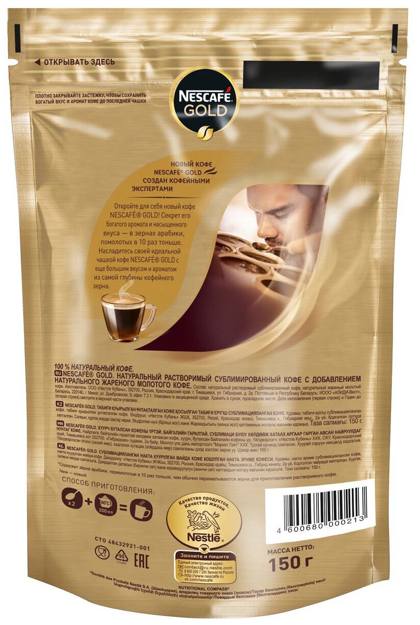 СохранитьКофе растворимый Нескафе Голд 150 грамм, пакет интересное: