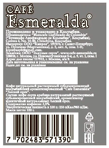 Лесной орех - "Cafe Esmeralda", кофе сублимированный, 100 г. интересное: