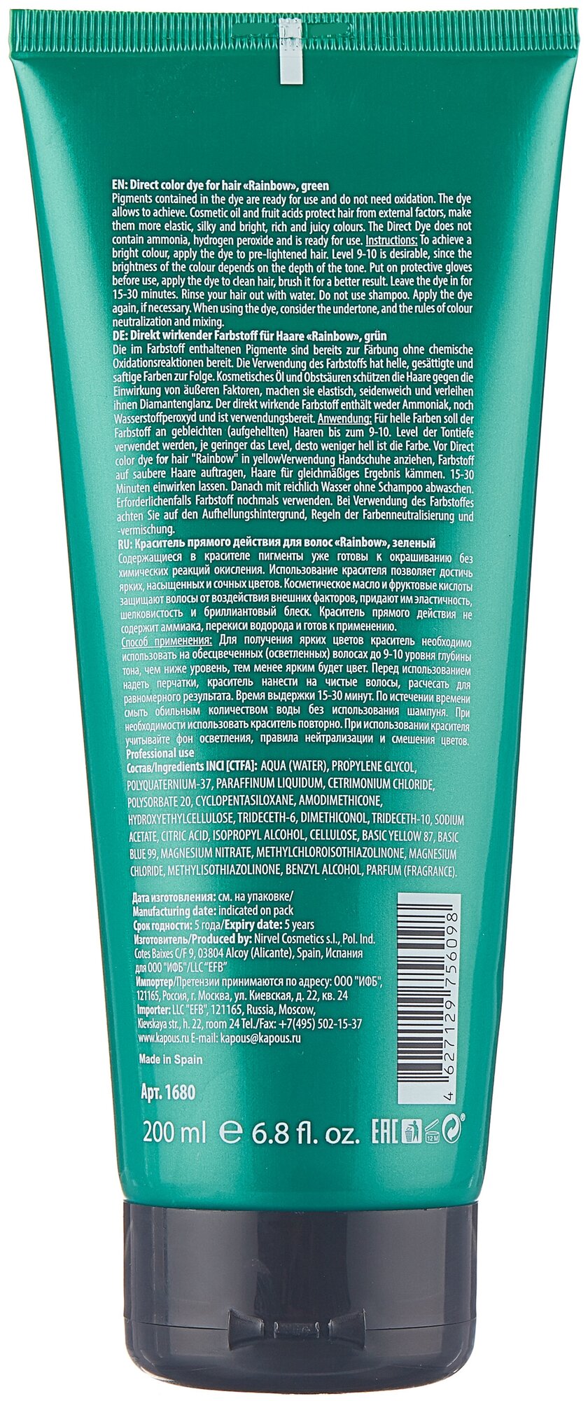 KAPOUS RAIN BOW краситель прямого действия "зеленый" 200 МЛ