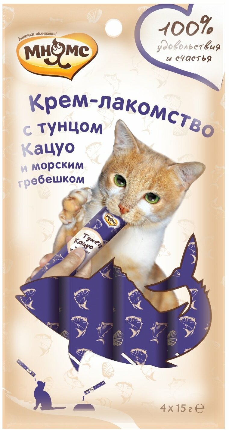 Мнямс Крем- лакомство для кошек с тунцом Кацуо и морским гребешком 15 г х 4 шт.