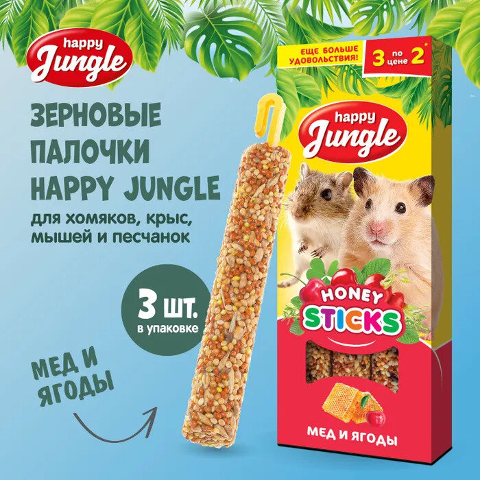 HAPPY JUNGLE Палочки д/мелких грызунов мед+ягоды 3 шт