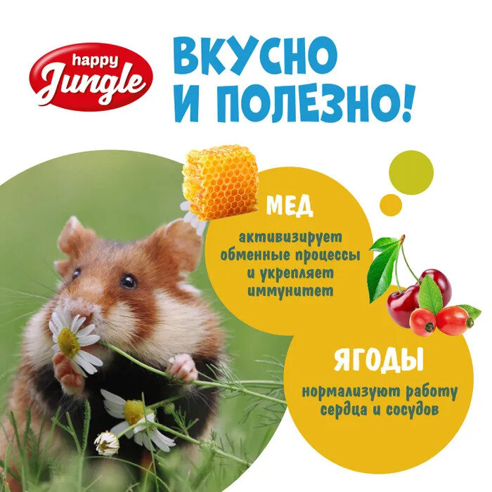 Лакомство Happy Jungle палочки для мелких грызунов мед+ягоды 3 шт.