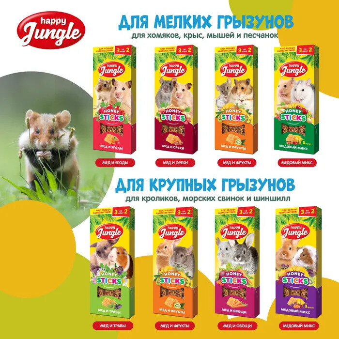 Happy Jungle Палочки для мелких грызунов мед ягоды