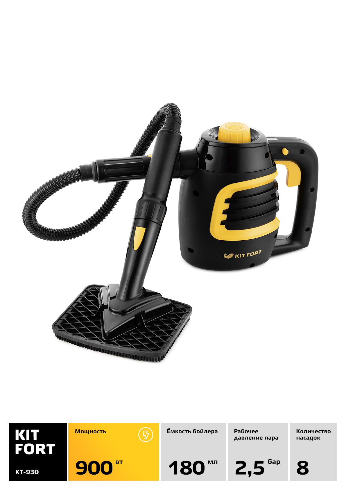 Пароочиститель Kitfort КТ-930 черный/желтый