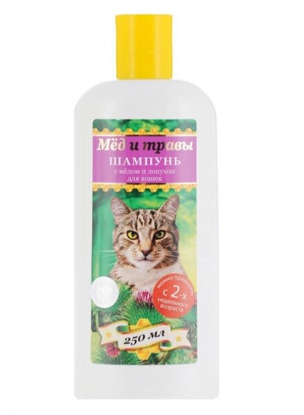 Купить Пчелодар Шампунь с мёдом и лопухом для кошек 250мл 0,25 кг 41277