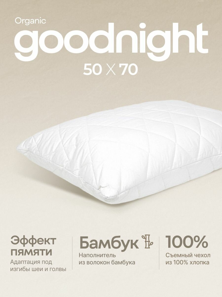 Подушка GoodNight Organic двухкамерная бамбук/искусcтвенный лебяжий пух/тик 50х70 интересное: