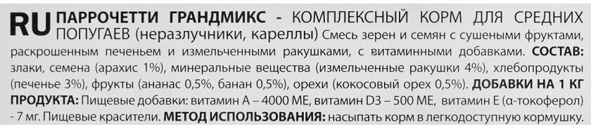 | Отзыв: | Корм хороший мои попугаи едят его судаволствием |