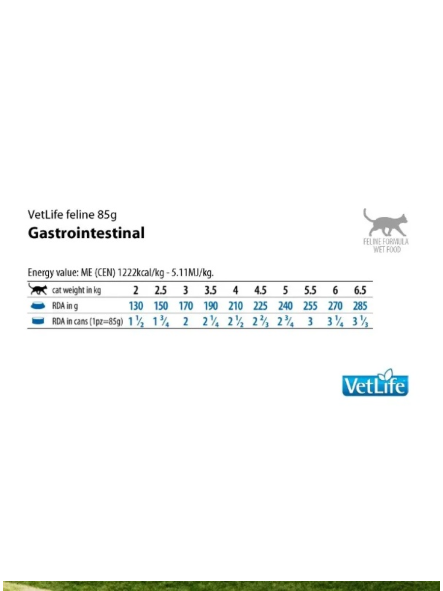 VET LIFE влажный корм для взрослых кошек при заболеваниях желудочно-кишечного тракта с курицей 0,085 кг x 24 шт.