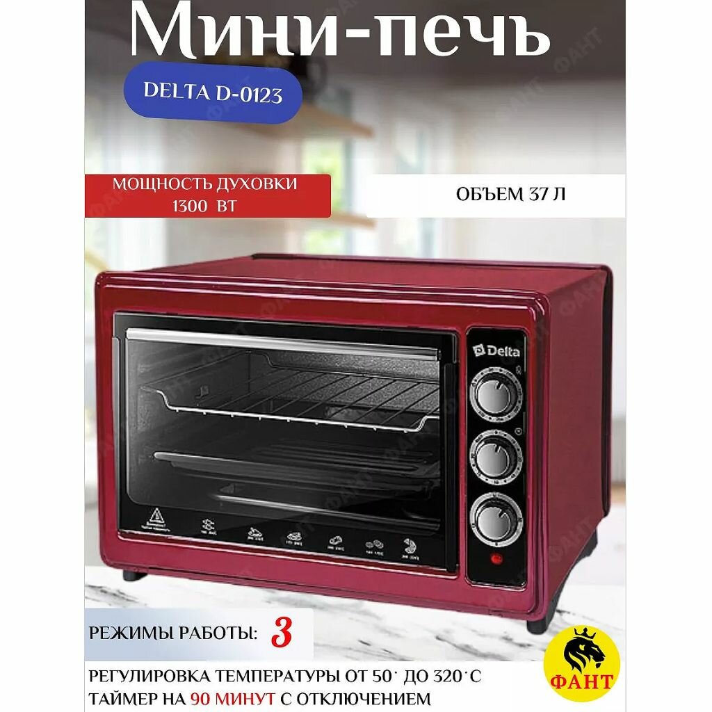 Мини-печь Delta D-0123 бордовый 37л 1300 Вт .