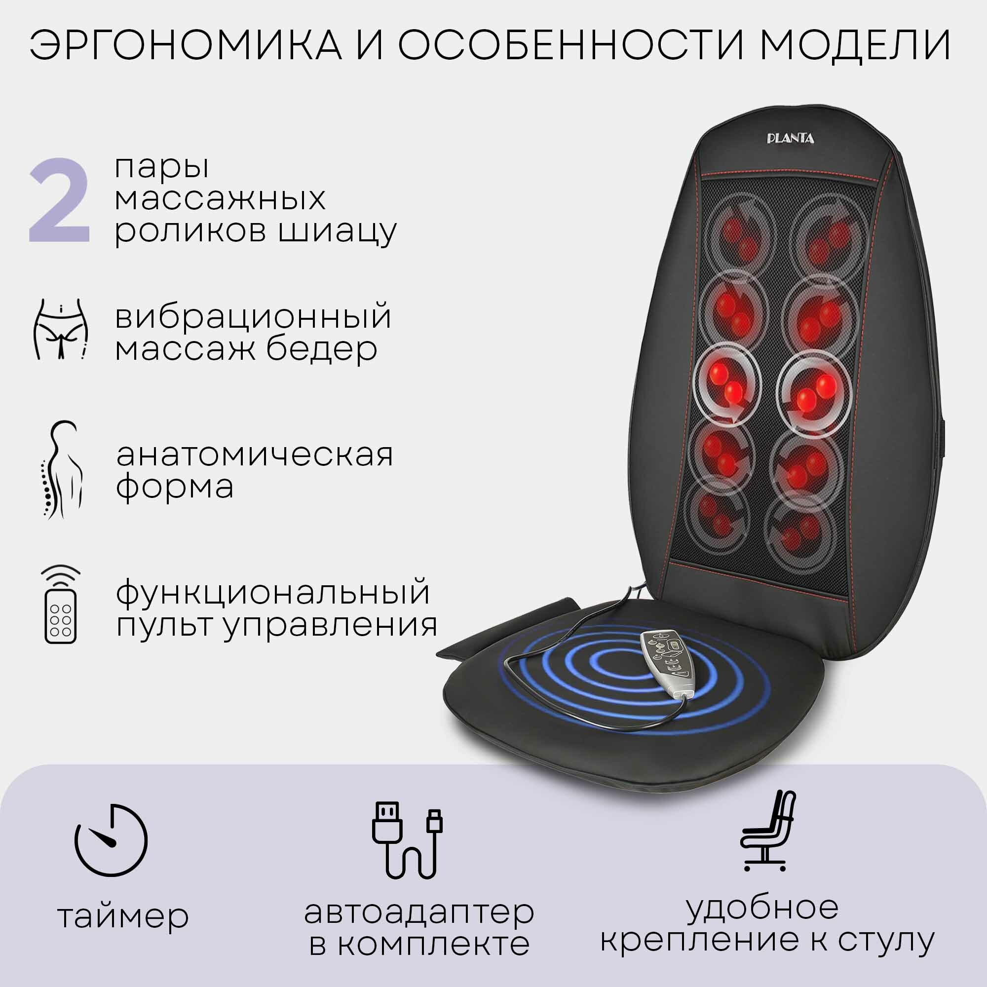 PLANTA Массажная накидка Шиацу MN-500B с подогревом и вибромассажем, 18 режимов, 3 уровня интенсивности, автоадаптер