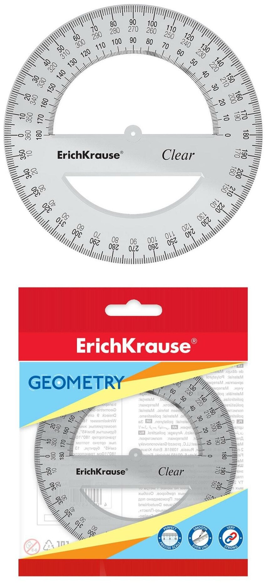 ErichKrause Транспортир 360*/12 см ErichKrause Clear, прозрачный интересное: