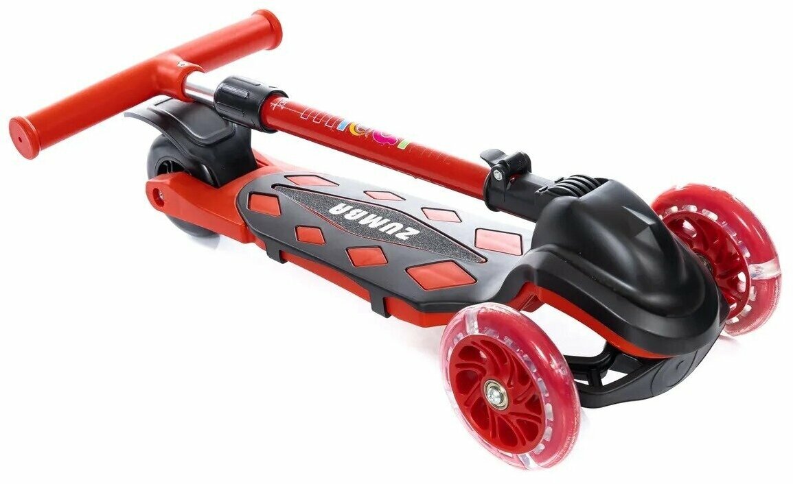 Самокат трехколесный со светящимися колесами Micar Zumba 2022 чёрный, красный ONE SIZE