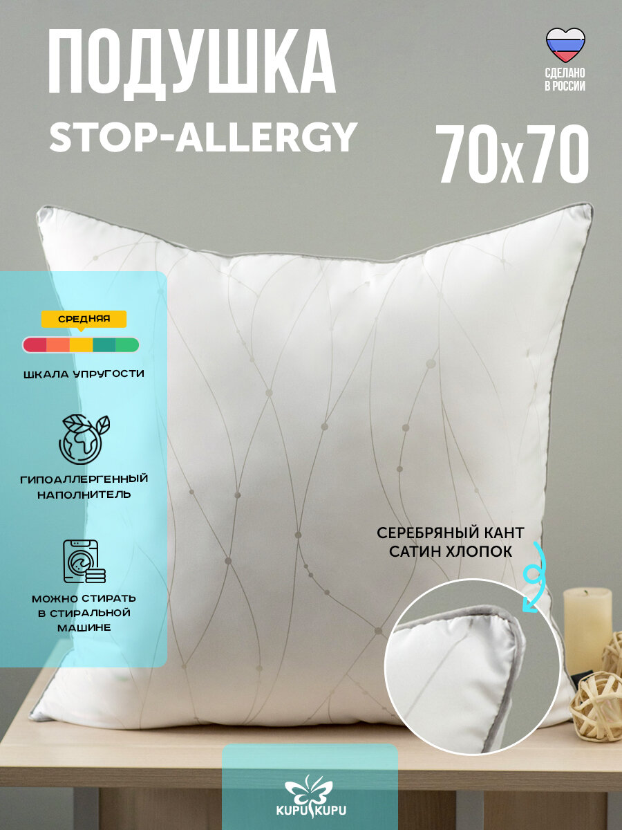 Подушка "KUPU-KUPU" Stop Allergy, 70x70 см, микрофибра, средняя степень поддержки