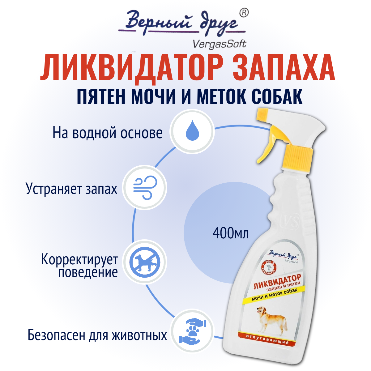 Верный Друг Ликвидатор Запаха и Пятен Мочи и Меток Собак 400 Мл Спрей