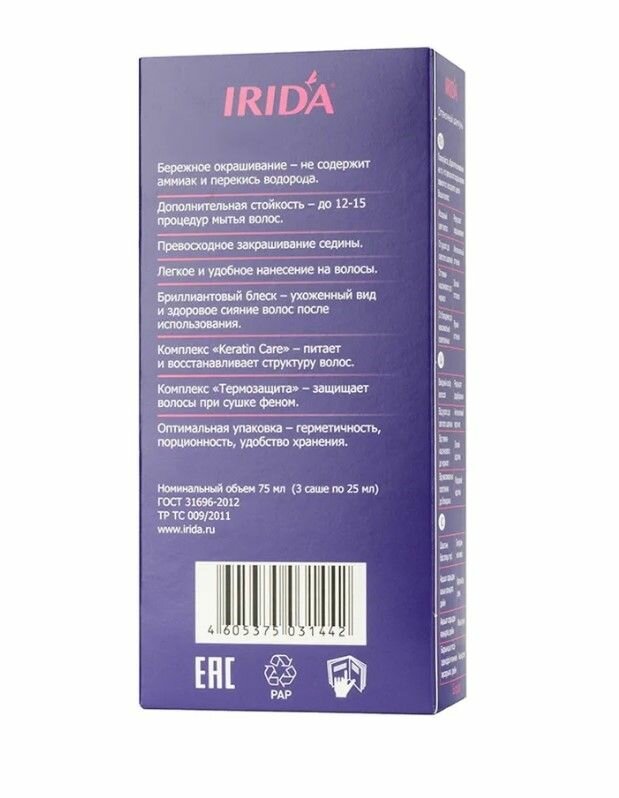 Краска для волос ирида_шамп. клас. оттен.3*25(нов. уп)_бордо
