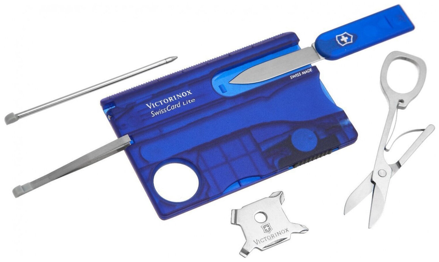 Швейцарская карта Victorinox SwissCard Lite, 0.7322.T2, 13 функций, полупрозрачный синий