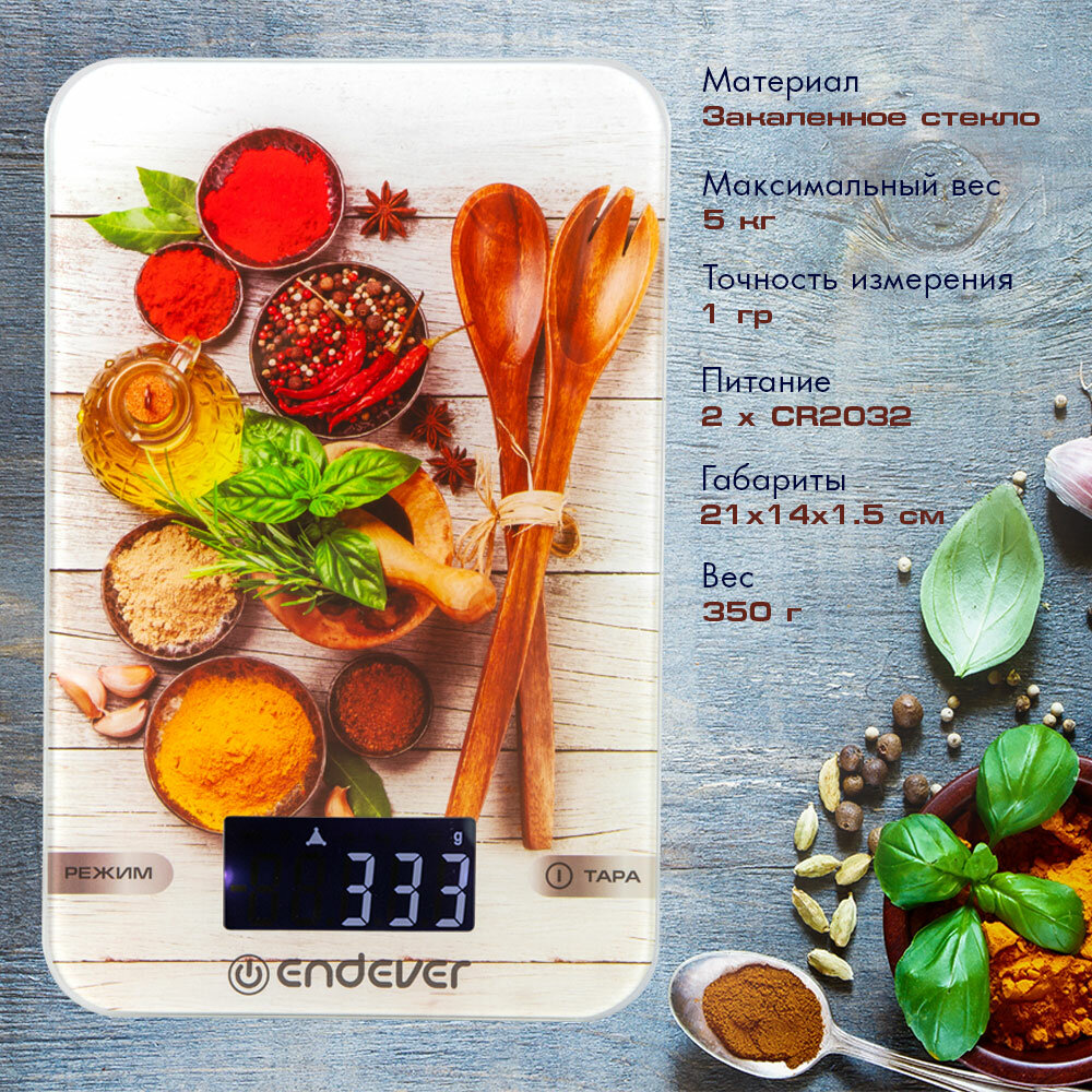 Весы кухонные электронные Endever Chief-509 / рисунок Столовые Приборы / от 2г до 5кг