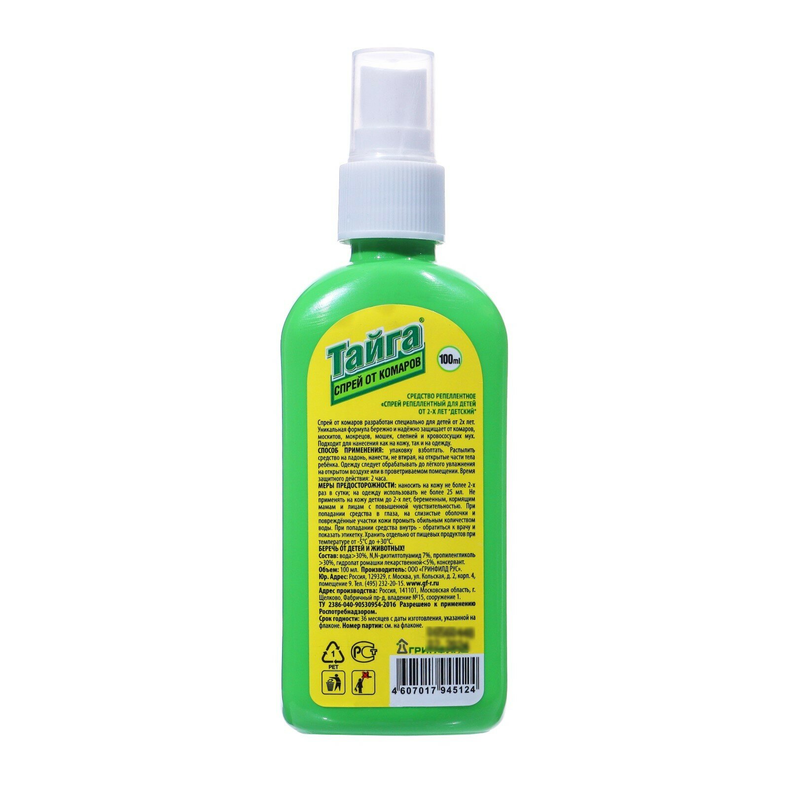 Спрей Тайга Детский репеллентный от комаров ИН-77/ИН-75, 100 мл, зеленый