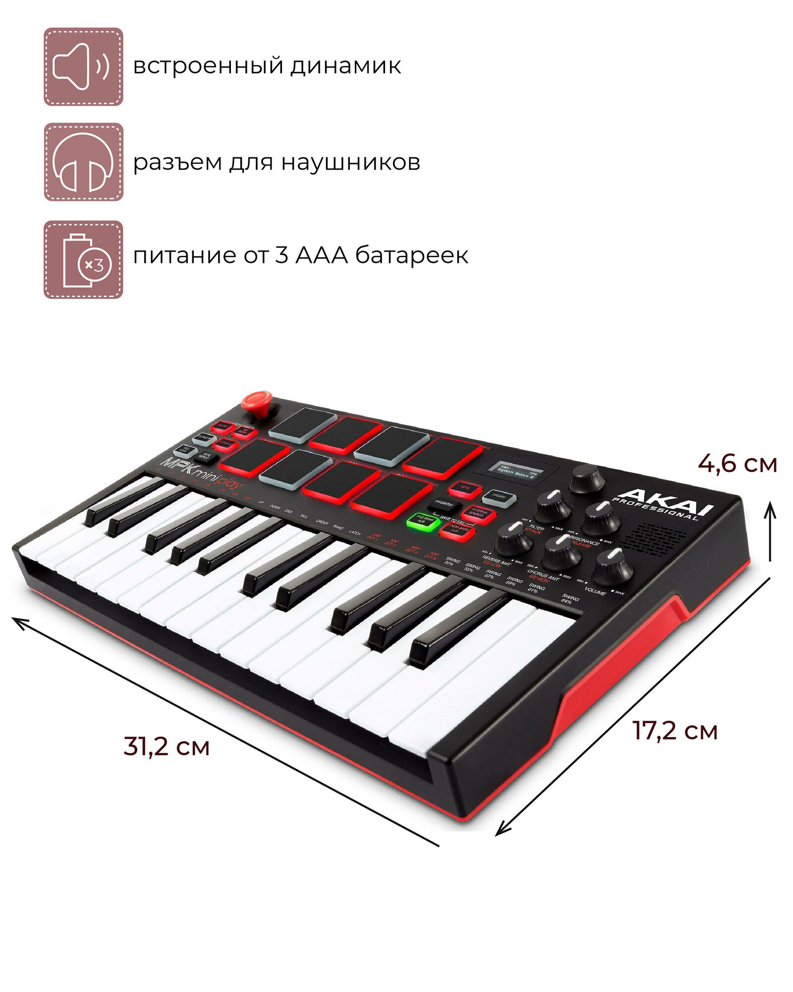 AKAI PRO MPK MINI PLAY MK3 миди-клавиатура интересное: