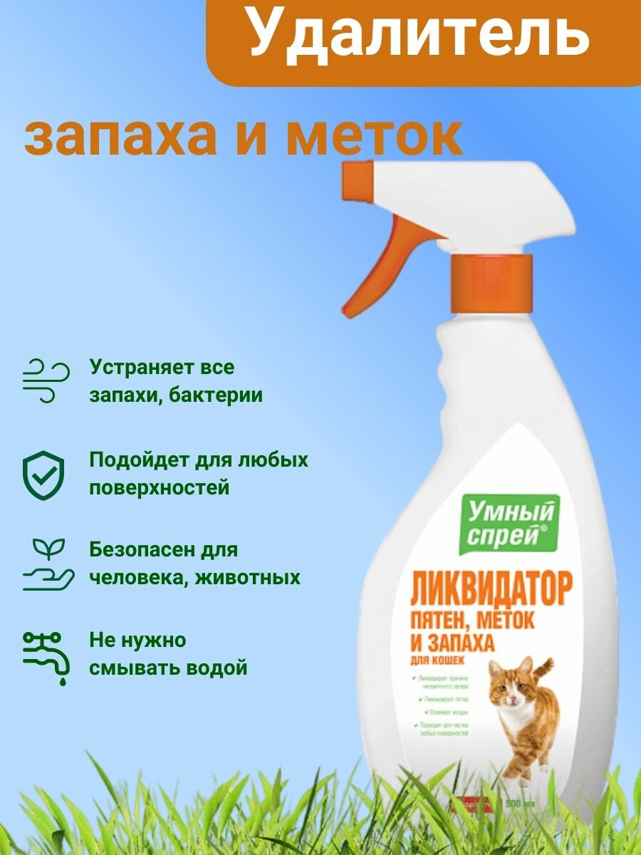 Средство Умный спрей - ликвидатор пятен, меток и запаха для кошек, 500 мл