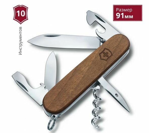 Нож перочинный VICTORINOX Spartan Wood, 91 мм, 10 функций, рукоять из орехового дерева