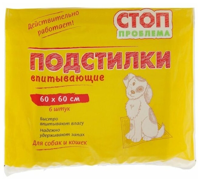 Пеленки для собак впитывающие стоп проблема S205 60х60 см 60 см 60 см 6 шт. желтый
