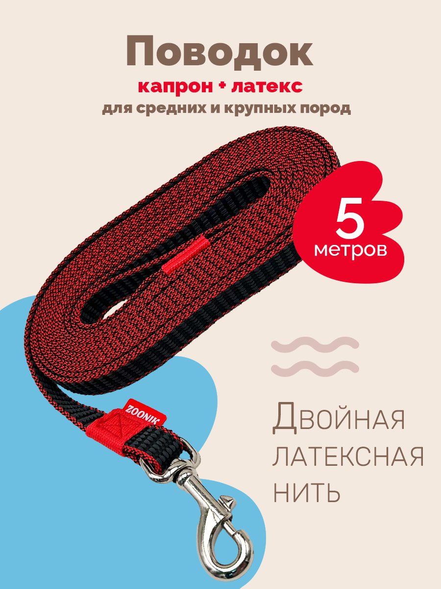Купить Поводок для собак 20 мм Зооник капроновый с двойной латексной нитью красный 5 м (1 шт)