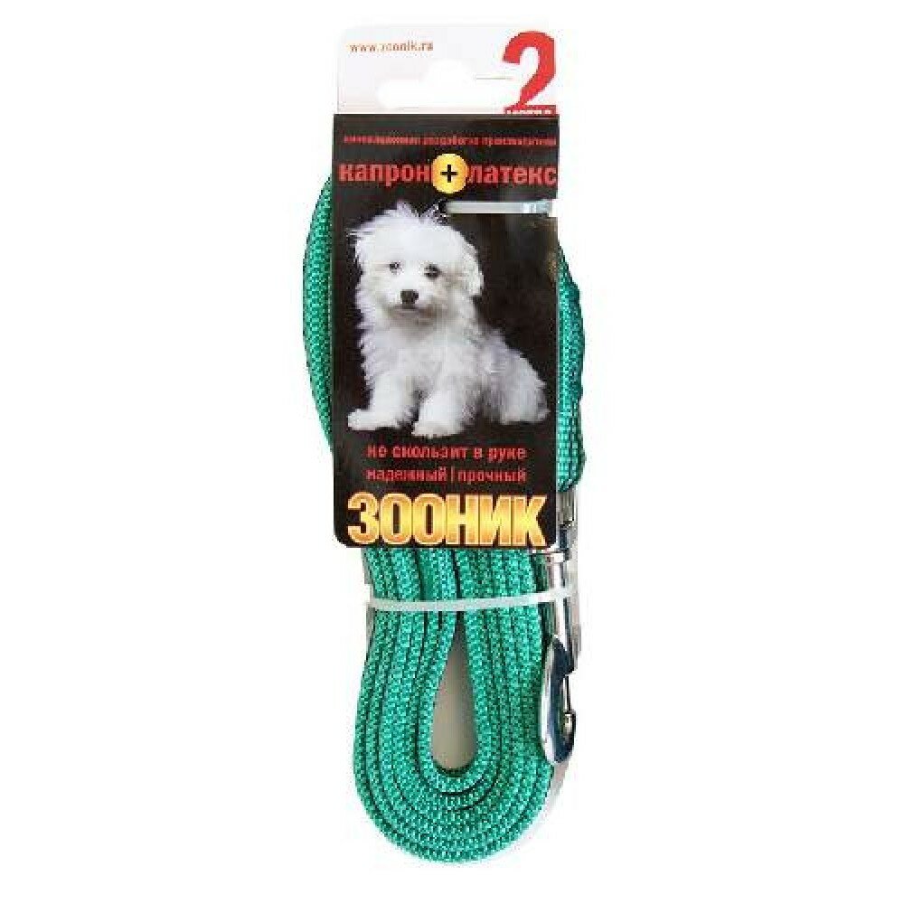 Поводок для собак Зооник, капроновый с латексной нитью, зеленый, 15 мм 2 м