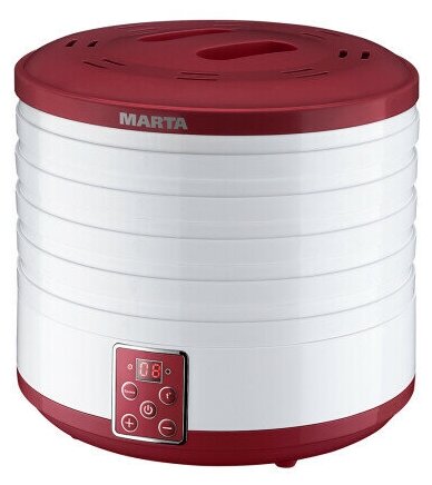 Ниже Вы можете прочитать отзывы на MARTA MT-1954 Vn/Gt 5 поддонов {бордовый гранат} сушилка д/фруктов,овощей, ознакомится с подробными характеристиками, посмотреть интересные обзоры и фотографии на MARTA MT-1954 Vn/Gt 5 поддонов {бордовый гранат} сушилка д/фруктов,овощей.