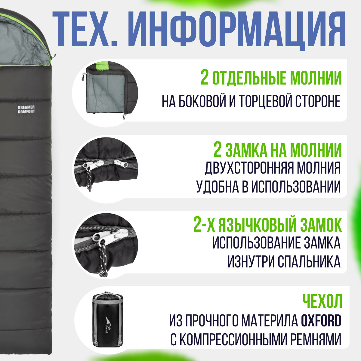 СохранитьСпальник Trek Planet Dreamer Comfort серый/зеленый правый интересное: