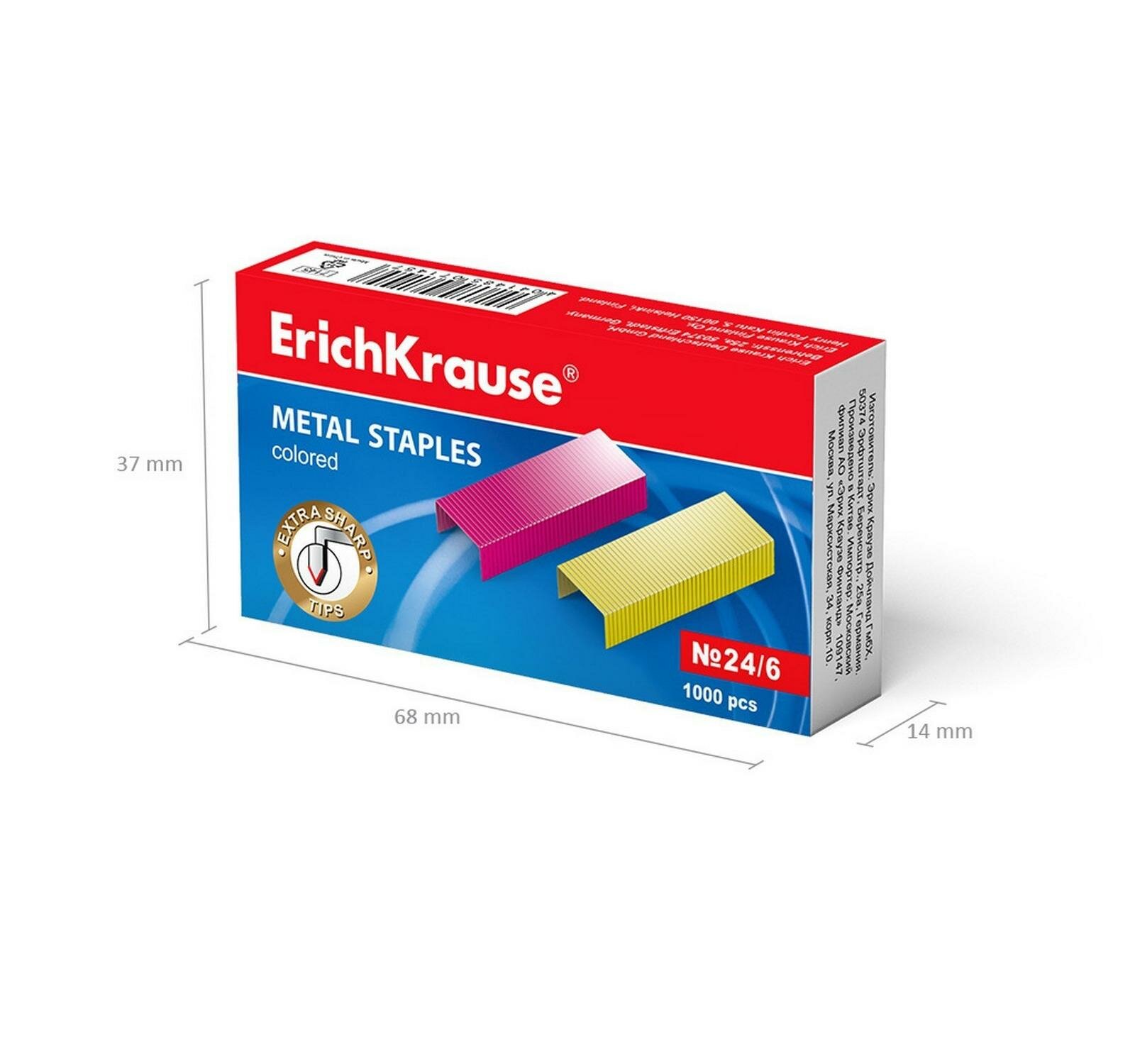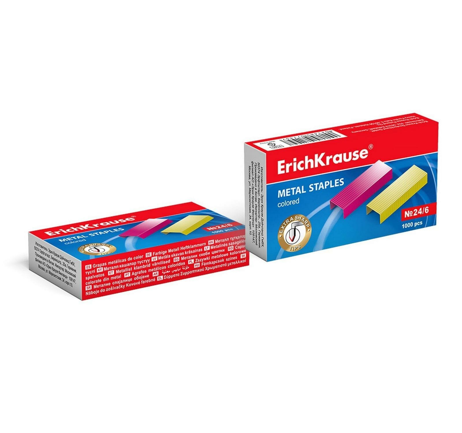 Скобы №24/6 ErichKrause® цветные (коробка 1000 шт.)