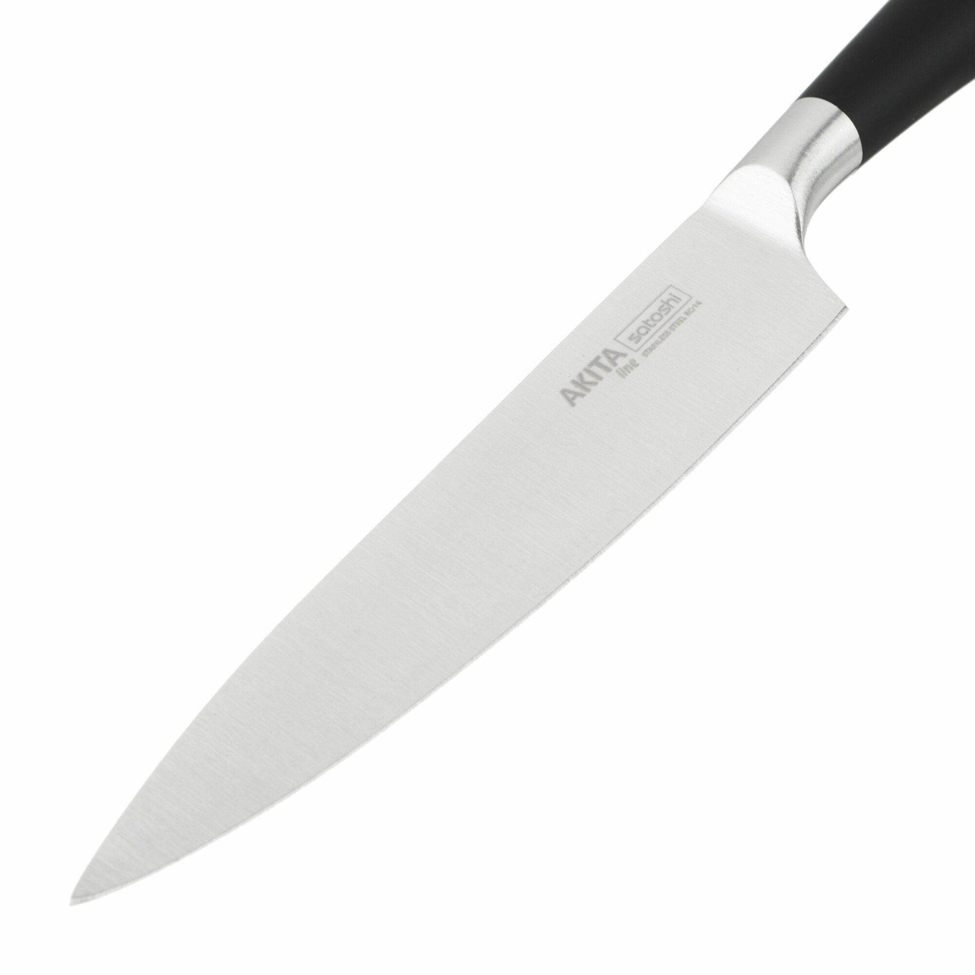 Нож кухонный Satoshi "Акита" 15 см из нержавеющей стали, широкое лезвие, черная ручка