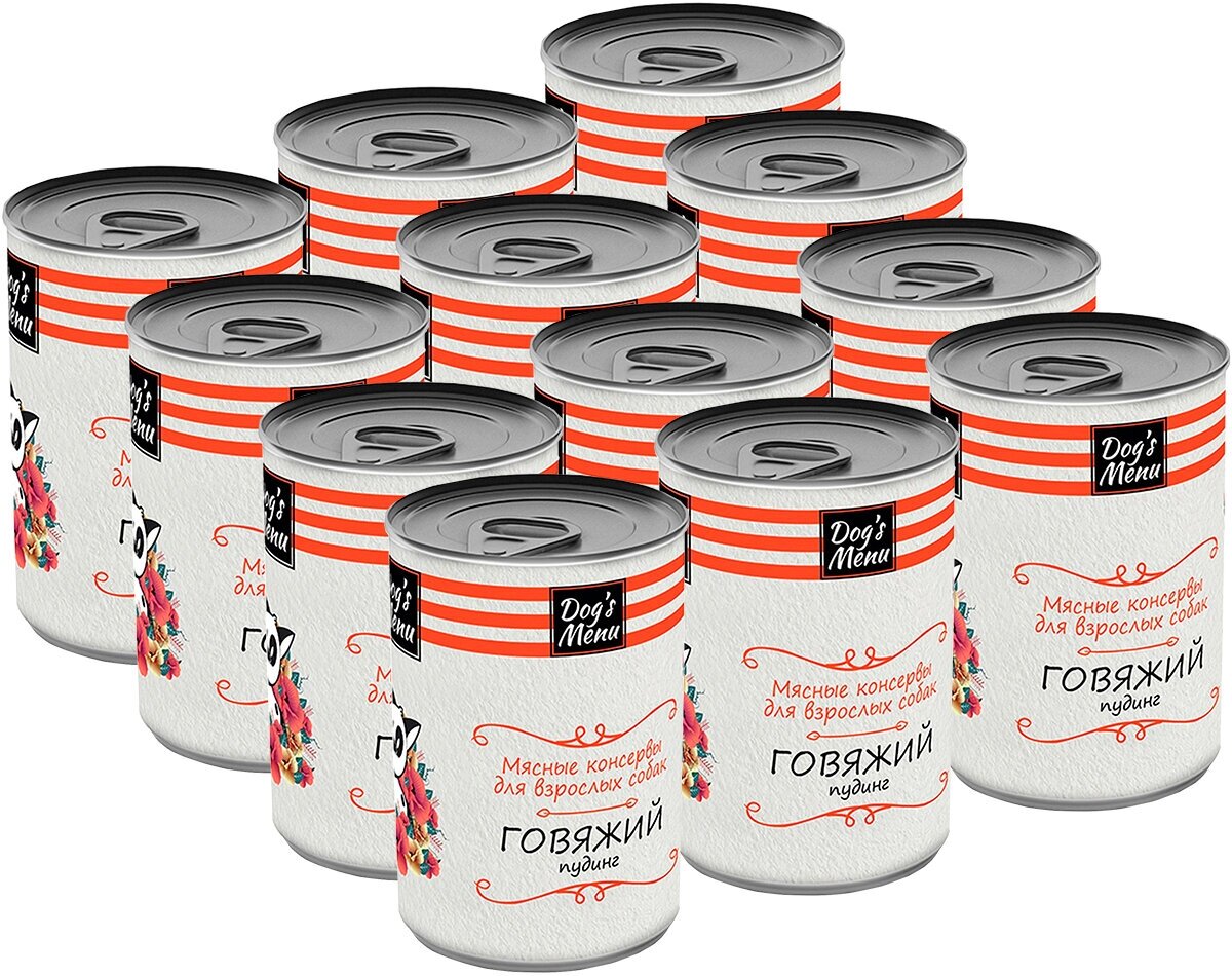 Корм влажный Dog's Menu Dog`s Menu для взрослых собак, говяжий пудинг 12 шт. х 340 г