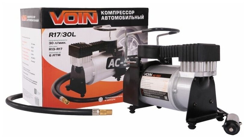 Компрессор автомобильный VOIN AC-580, 13,5 А, 30 л/мин, провод 3 м, шланг 1 м 2834286 .