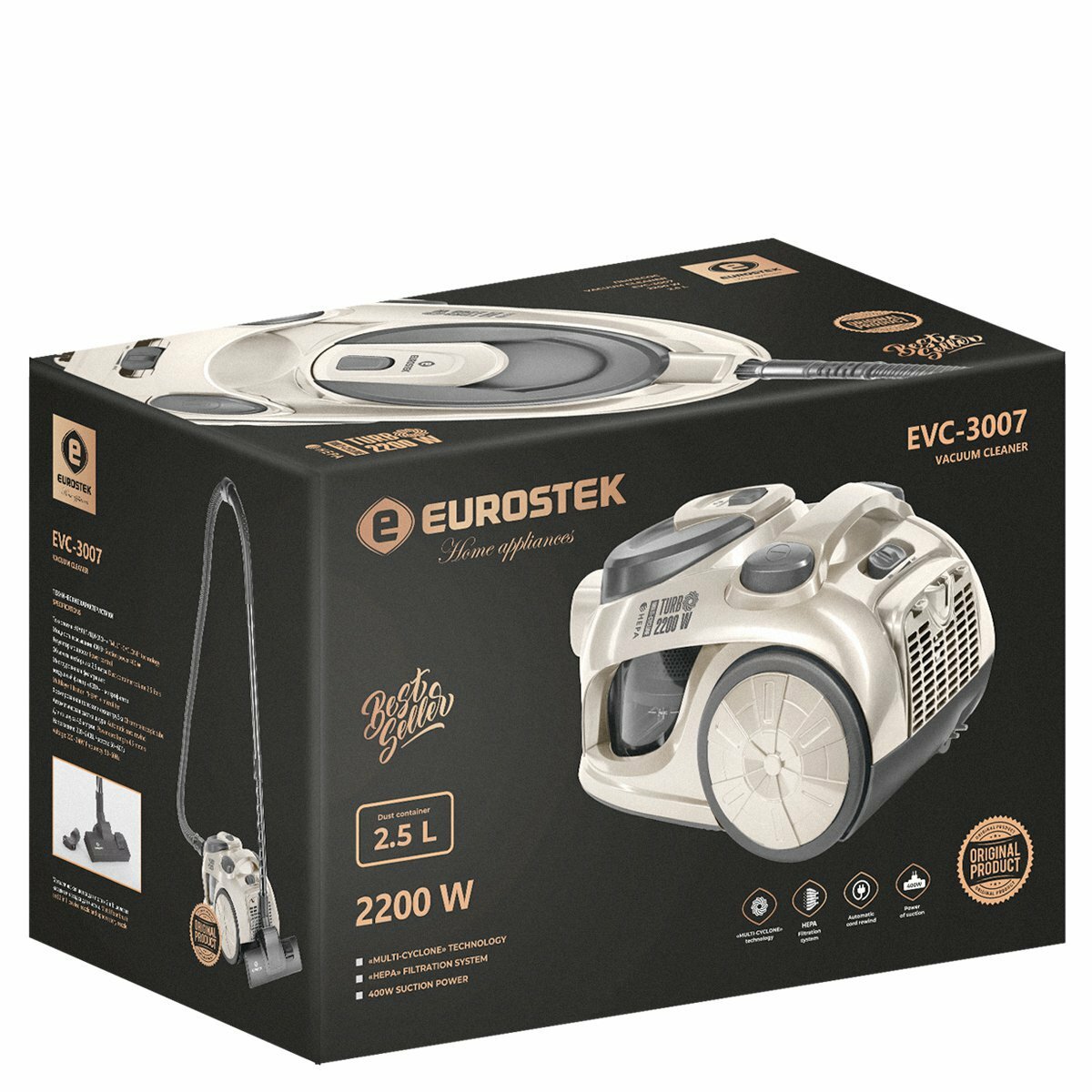 Пылесос Eurostek EVC-3007 Пылесос без мешка мульти-циклон Eurostek EVC-3007 с Hepa фильтром. Максима