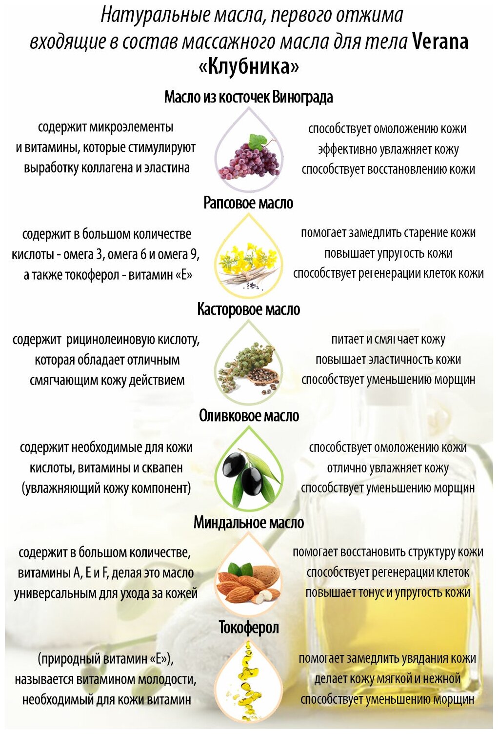 Verana Массажное масло для тела Клубника, натуральное, омолаживающее, восстанавливающее, ароматерапия, 250мл