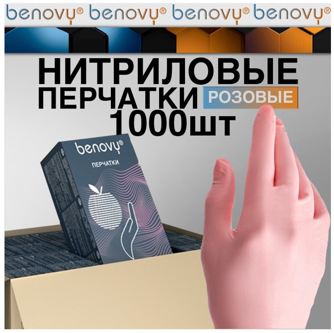 Перчатки нитриловые Benovy (розовые, размер L, 100 штук)