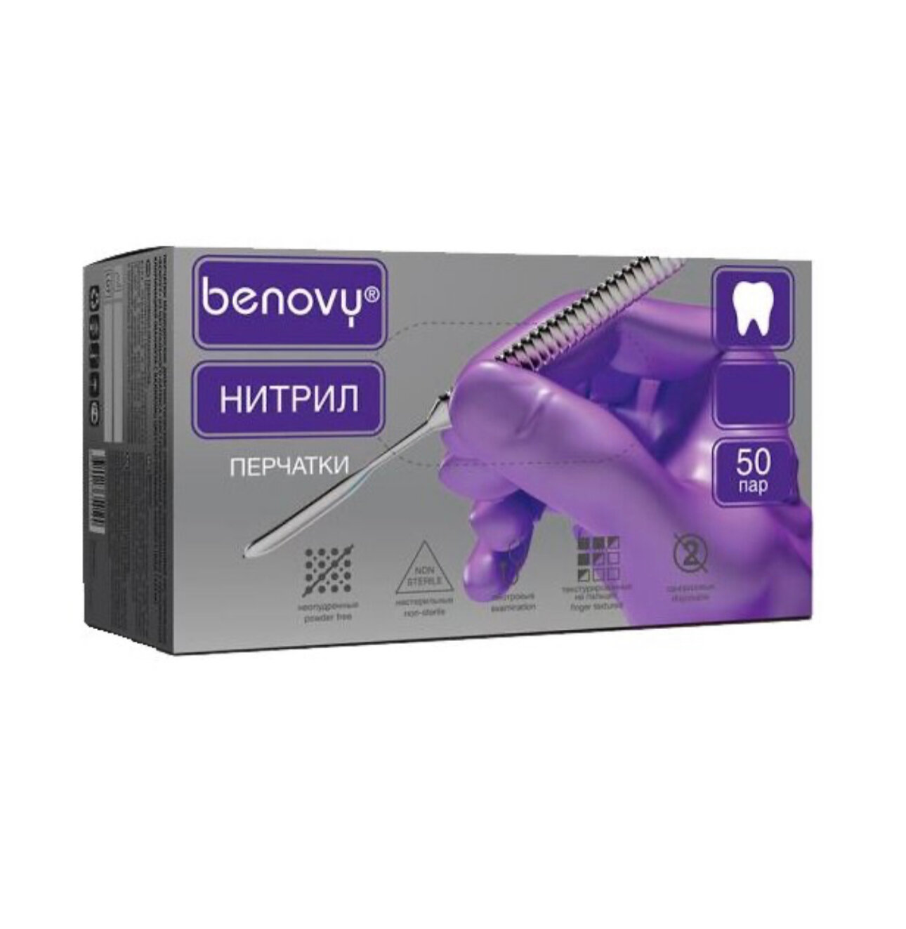 Перчатки нитриловые текстурированные сиреневые Nitrile Chlorinated Benovy M 50 пар