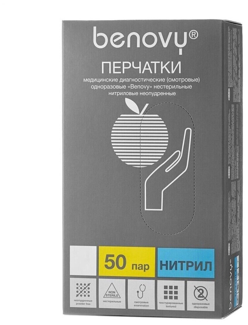 СохранитьПерчатки медицинские диагностические (смотровые) одноразовые нестерильные "BENOVY" нитриловые чёрные / Размер S / 100 шт., 50 пар интересное: