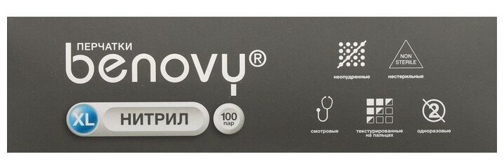 Перчатки Benovy медицинские нитриловые голубые XS 3,0 гр 50 пар(50 шт.)