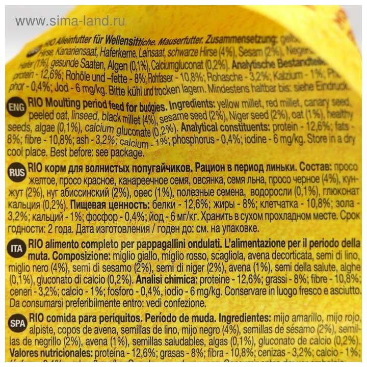 RIO корм Moulting period для волнистых попугайчиков в период линьки, 1кг