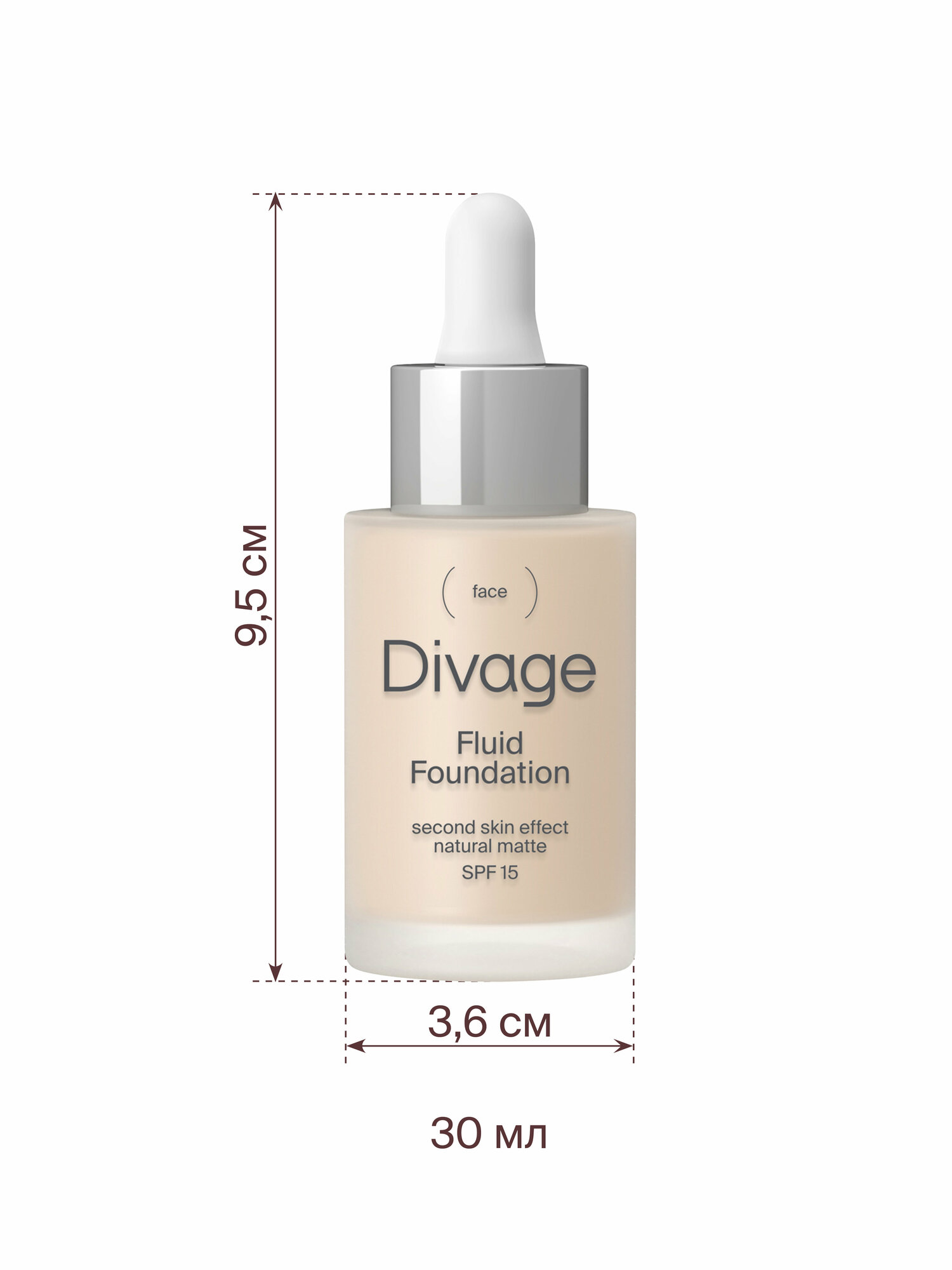 Диваж тональный крем-флюид для лица fluid foundation 01 слоновая кость для любого типа кожа 30мл / с матовым финишем защита от солнца / декоративная