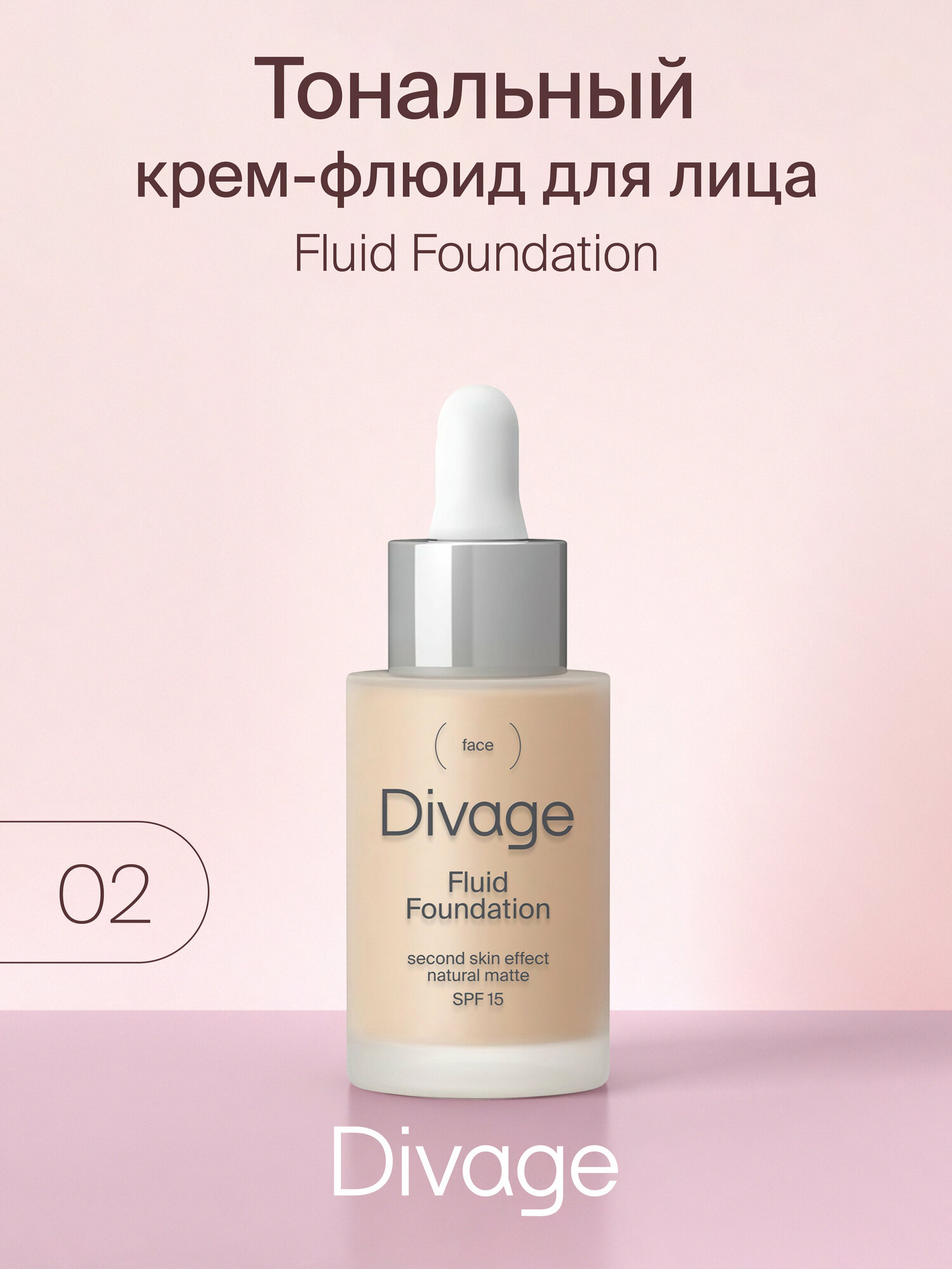 DIVAGE Тональный флюид Fluid Foundation, 30 мл, оттенок: 02