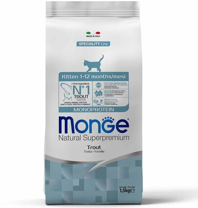 Monge Cat Kitten Monoprotein корм для котят всех пород, форель 1,5 кг