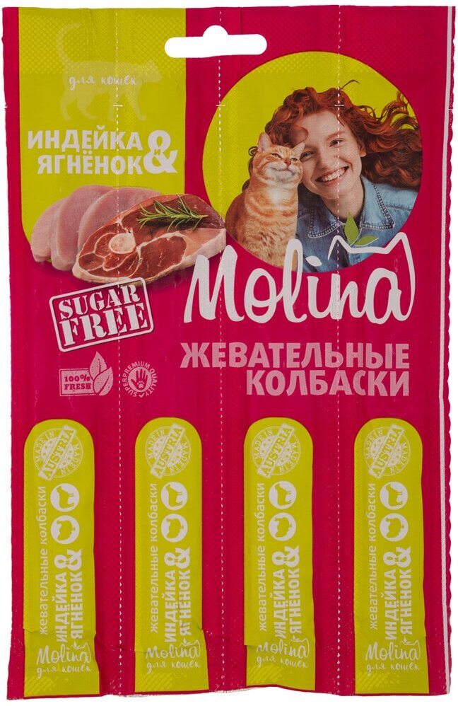Лакомство для кошек Молина Жевательные колбаски Индейка и ягненок, 5г х 4шт. в уп. 20 г