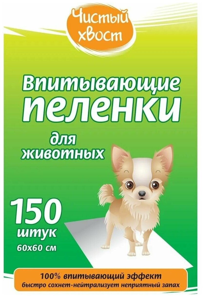 Чистый хвост впитывающие пеленки для животных, 60х60 см, 150 шт