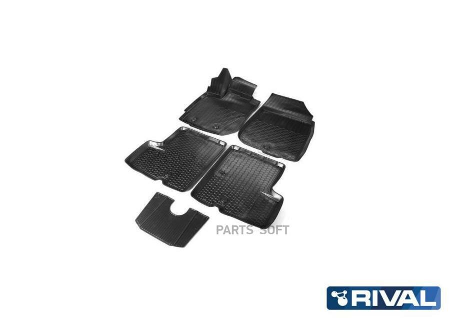 Комплект автомобильных ковриков в салон Nissan Terrano III рестайлинг (4/FWD) 2017-/Renault Duster I рестайлинг (4/FWD) 2015-, полиуретан, с крепежом, 5 шт. RIVAL 14701007 | цена за 1 шт