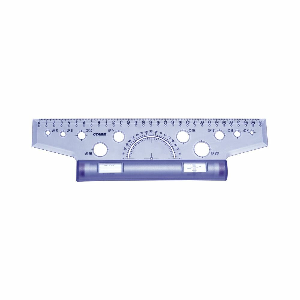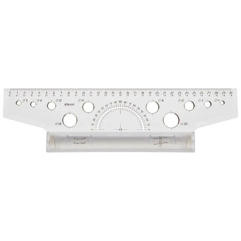 Линейка с роликом СТАММ (рейсшина) 30 см, пластиковый ролик, с транспортиром, прозрачная (ЛР20)