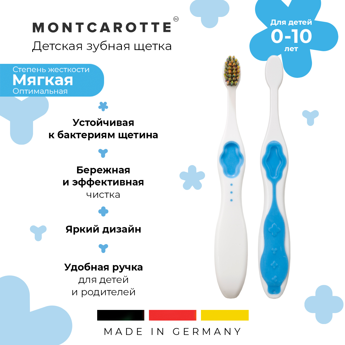 Подарочный набор Ассорти 0+ детская зубная щетка и детская зубная паста, Монткаротт, Италия, Южная Корея, MontCarotte