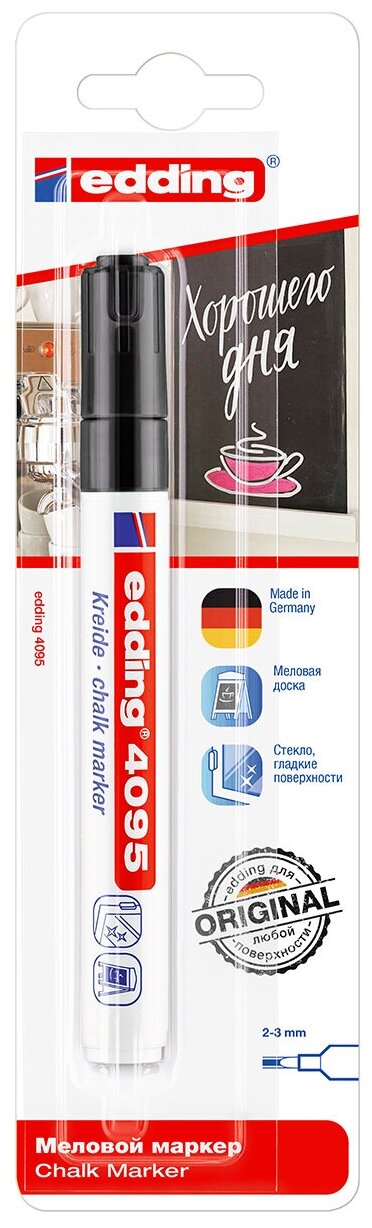 Маркер меловой EDDING 4095, 2-3 мм, черный, влагостираемый, для гладких поверхностей, E-4095/1